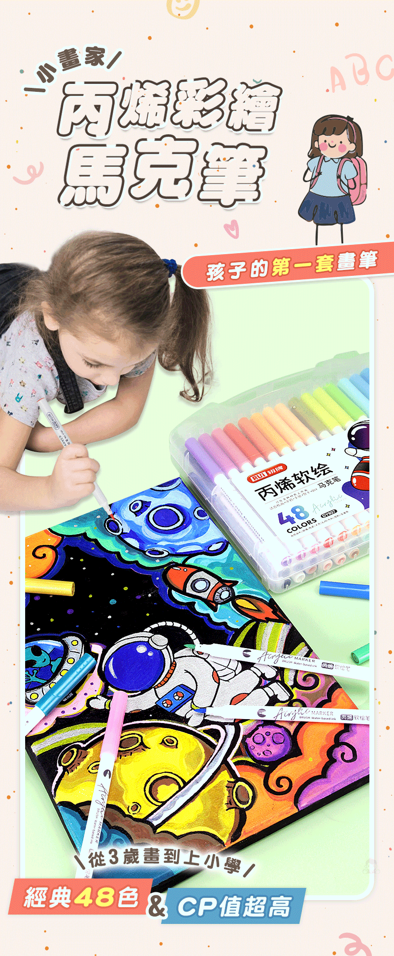 2分鐘前丙烯彩繪馬克筆 超強覆蓋力,萬物材質皆可畫,專為兒童研發,輕鬆擦拭不卡色 - 【一套】丙烯彩繪馬克筆 (48色)NT$580